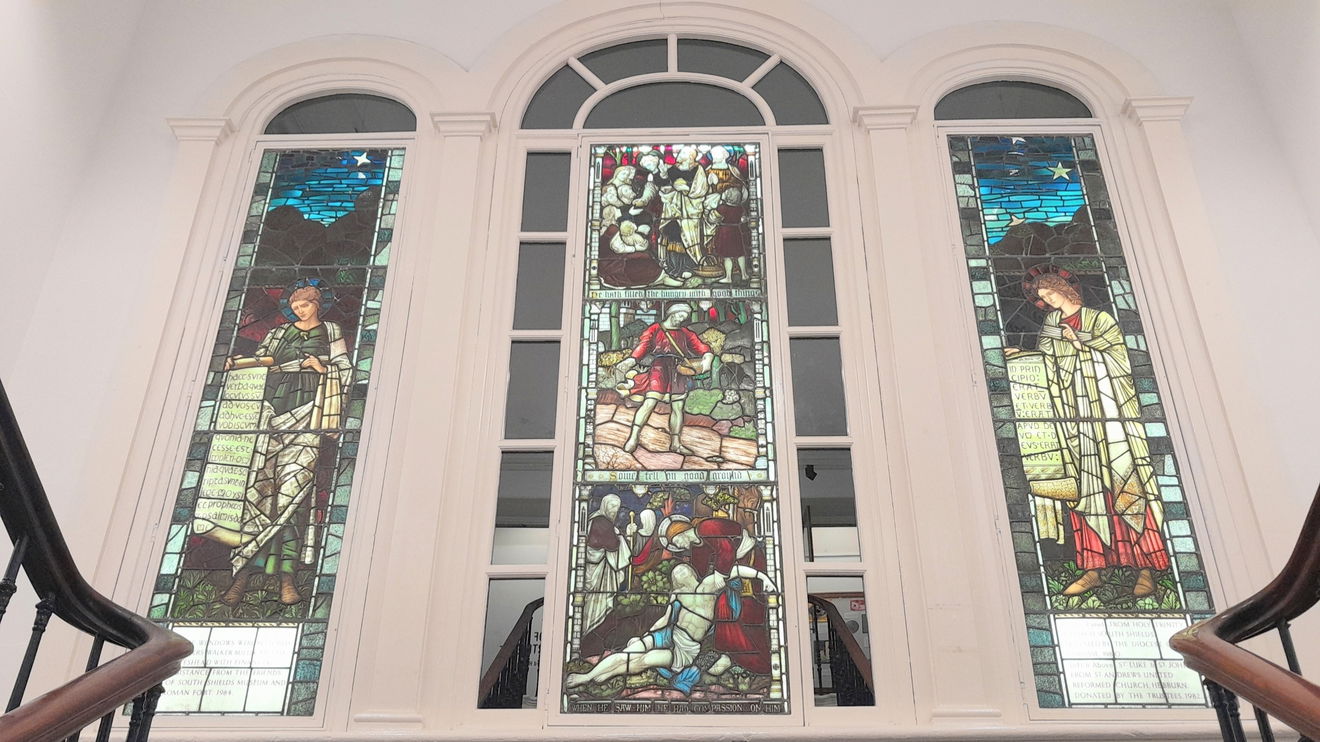 The stairwell is certainly a showstopper with marvellous stained glass windows.