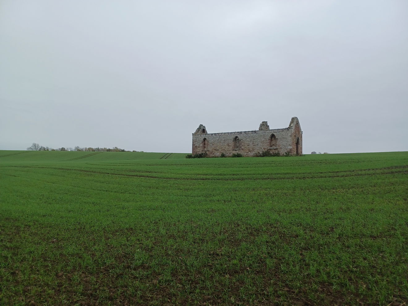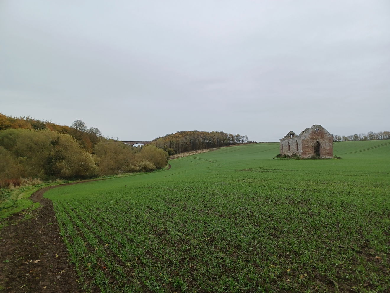 St Cuthbert's Chapel has been on my to-do list for a long time and we got the opportunity recently to visit in October 2025. It is not an easy place to get to, but we opted to park at Twizel Bridge and walked to the chapel from there. This was a 4.5km round trip meaning we could also stop and visit Twizel Bridge and Twizel Castle too and get ourselves some points for the leaderboard. The chapel sits in a farmers field close to where the River Tweed and River Till meet and is situated on the Twizel Castle estate.