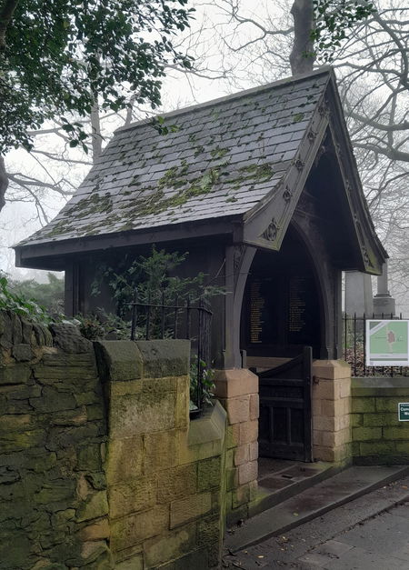 The lych gate as you enter from North Road. It dates from 1918 and was constructed as a war memorial, which merits its Grade II listed status. There is more Welsh slate on the canopy.