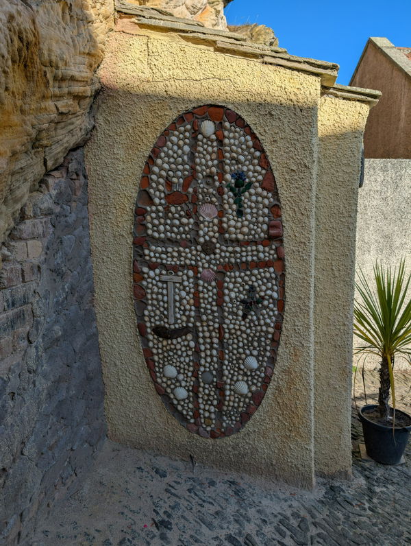 The cave was opened to the public in 2000, after undergoing a major refurbishment. The gate and handrail designed by Miles Auchinleck from neighbouring Crail were added, as well as the beautiful mural to the left of the door which was designed and crafted by pupils of Pittenweem Primary School, using shells and pebbles from the beach.