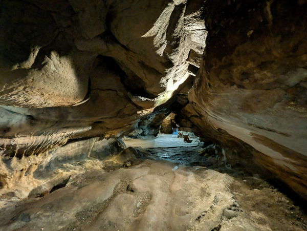 The cave would have been at sea level 10,000 year ago and as the waters receded and a river flowed through the cave, this perfectly crafted cavern was created. If you look down to the floor, you can see how the erosion shaped the limestone. There are light switches just inside the cave on the right, you will need them!