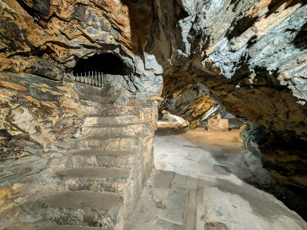 From the main cavern, you can see the smaller caves. The one to the right has an alter at the entrance and is larger then the low left hand cave. It is hard to imagine how such a network of caves exist behind the small gate.