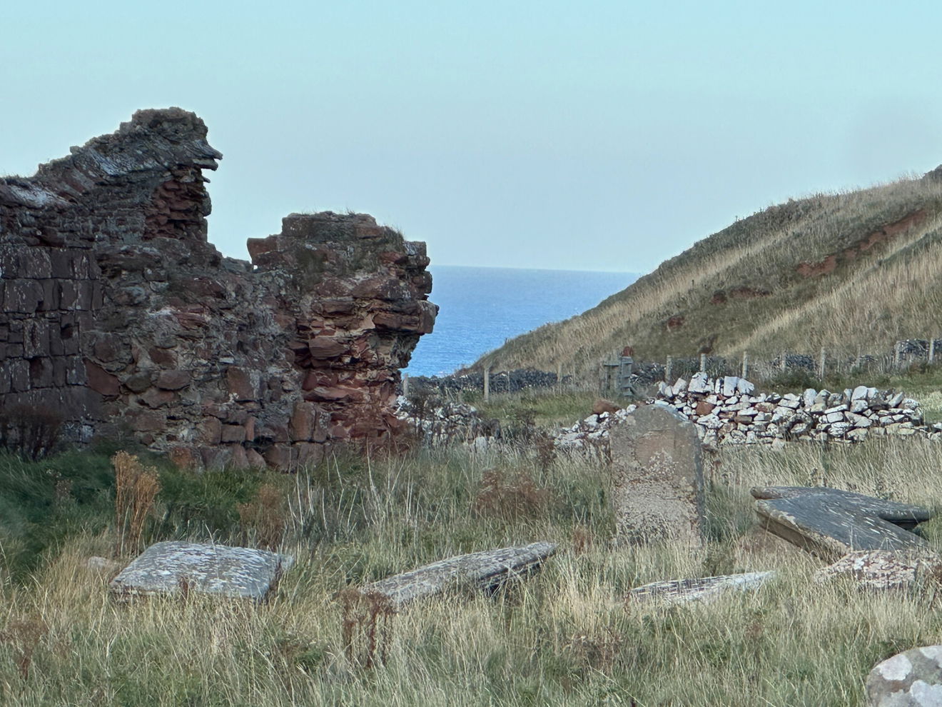 A ruined shell of an ancient kirk, teetering on the cliffs at Old Cambus, Cockburnspath.