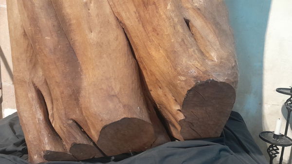 This sculpture has been securely fastened to the wall, so you can admire it close up where you notice the base and roots and gaze at those slender fingers.