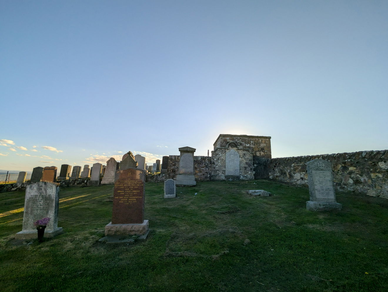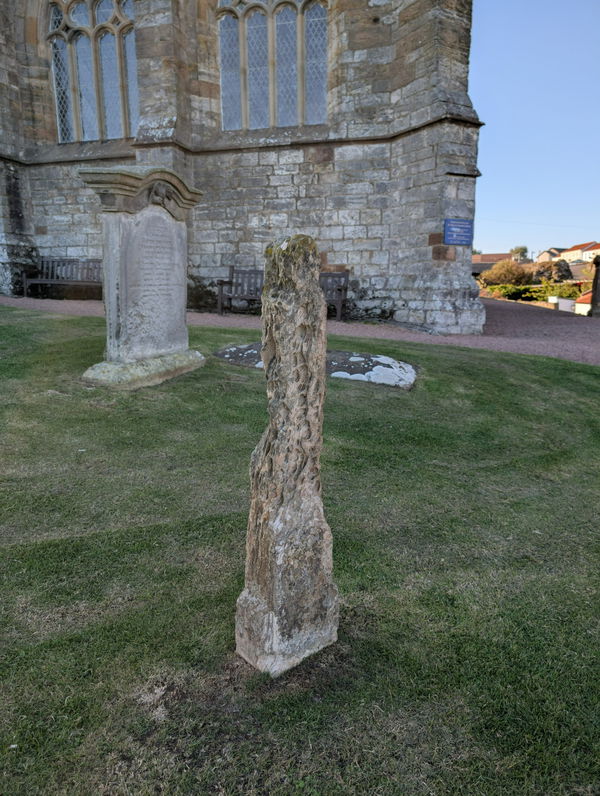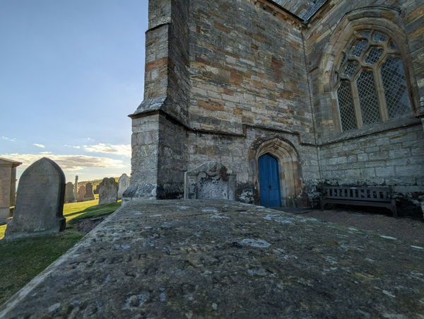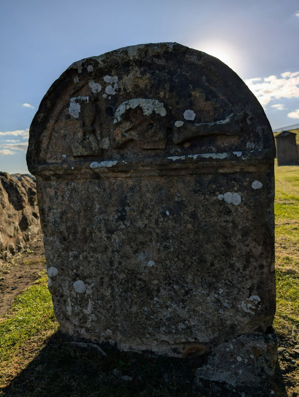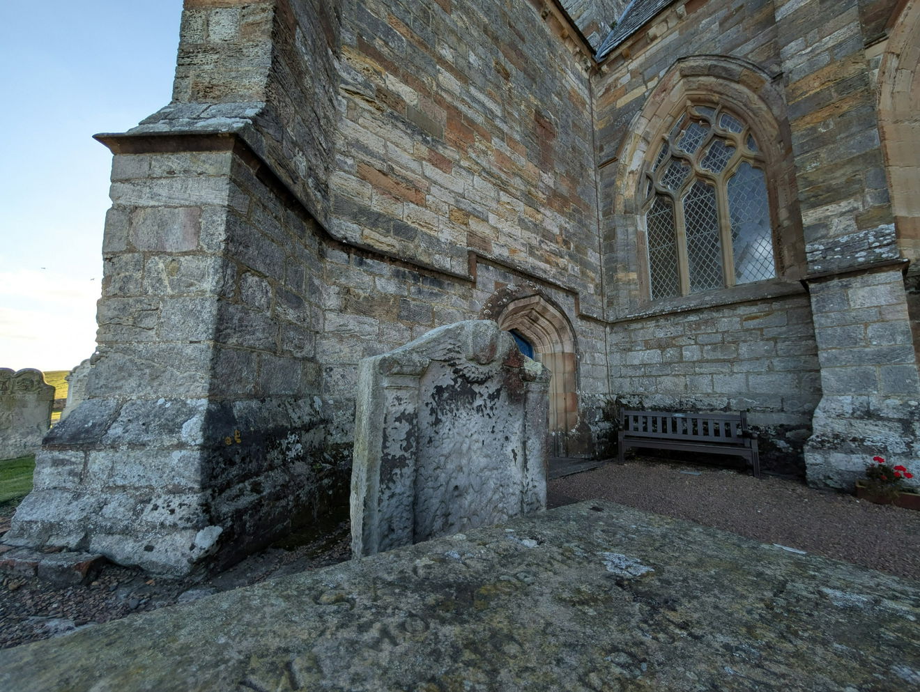 Walking around the outside of the Kirk, you see some some ancient memorial stones that have been battered by the elements in this exposed position.