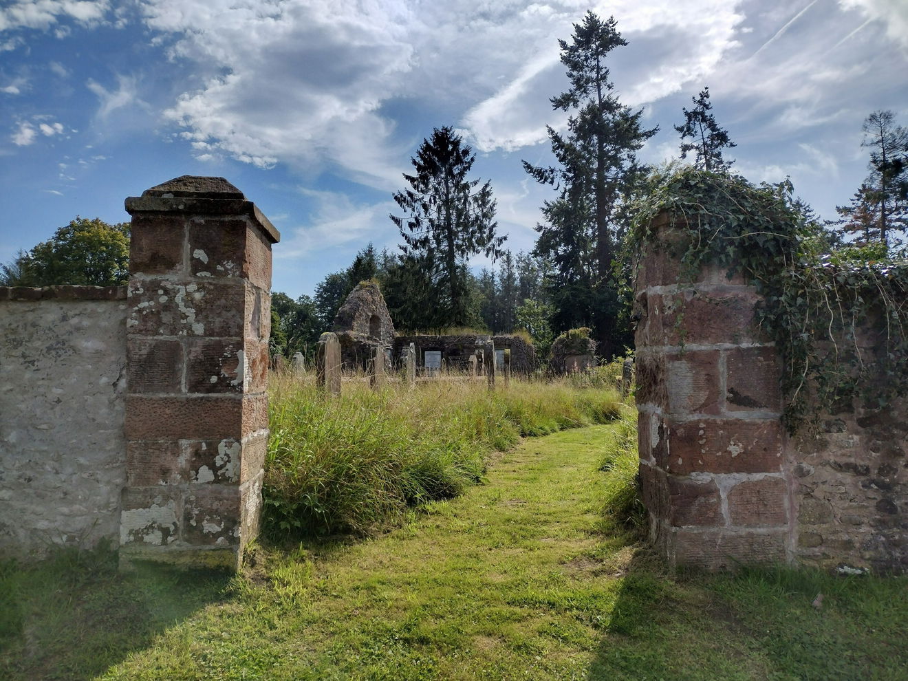 The ruins of an ancient church near Kirkbank, that have been converted into a burial enclosure.