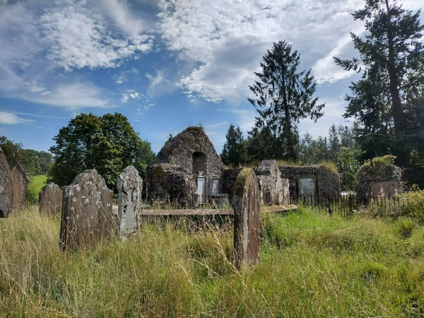 It was while plotting a circular walk in the area, that I noticed the remains of St Mungo's Church marked on the OS Map near the parking area. When we arrived, I was delighted to be met with an ancient looking kirkyard. I couldn't resist investigating further.