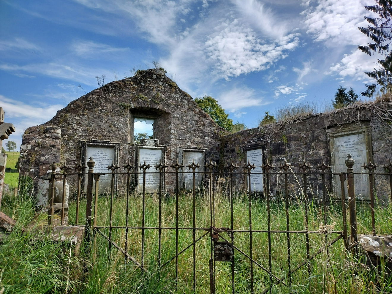 Sometime in the 1800s, the church was converted into a private family burial enclosure, that now houses memorials largely for the Jardine's.