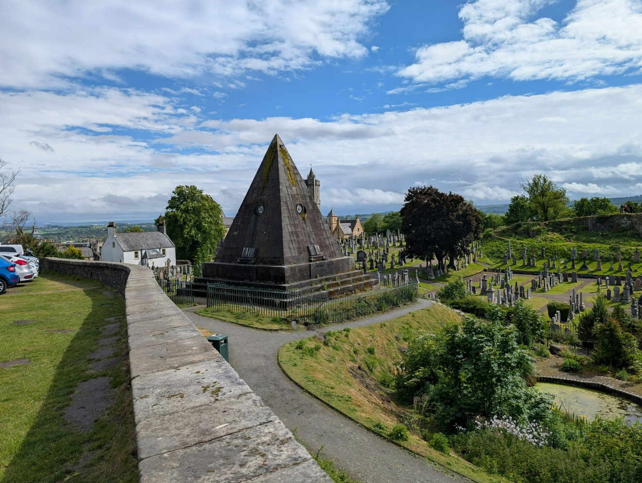 There is a car park next to Stirling Castle which overlooks the cemetery. By parking there, you also get the opportunity to visit the Boer War Memorial and the Robert the Bruce Statue.