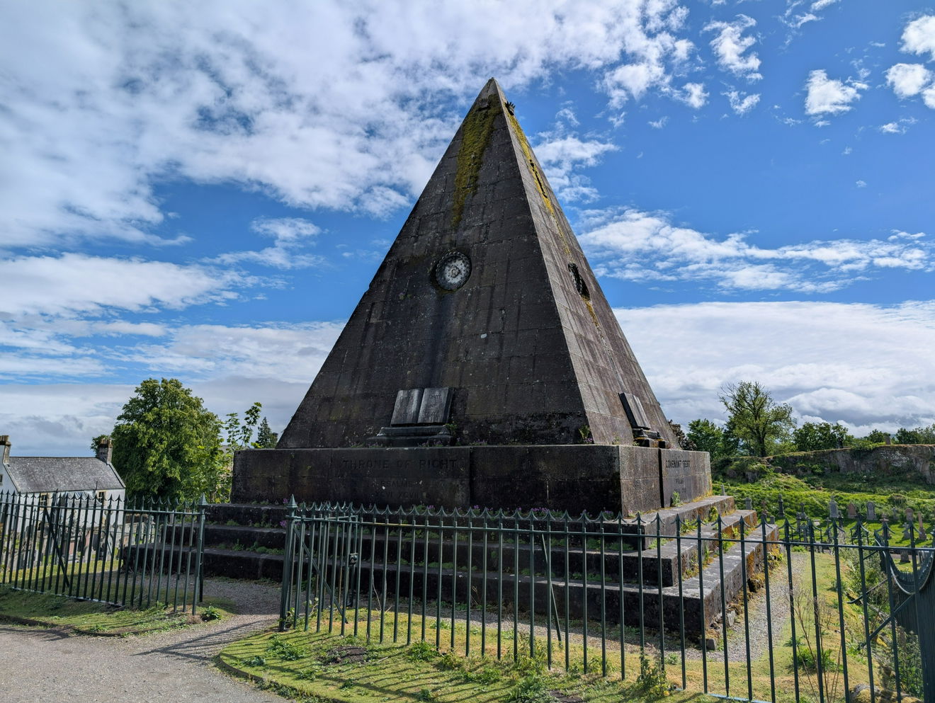 The Star Pyramid commemorates the martyrs of the Scottish Reformation who put their lives on the line for their religious beliefs. To reflect the significance of their faith, the pyramid houses four marble Bibles inscribed with poignant words. Below the bibles are further carvings of the words Covenant Rest, Throne of Right, Rock of Ace and Union Banner and Psalms chapter and verse references.