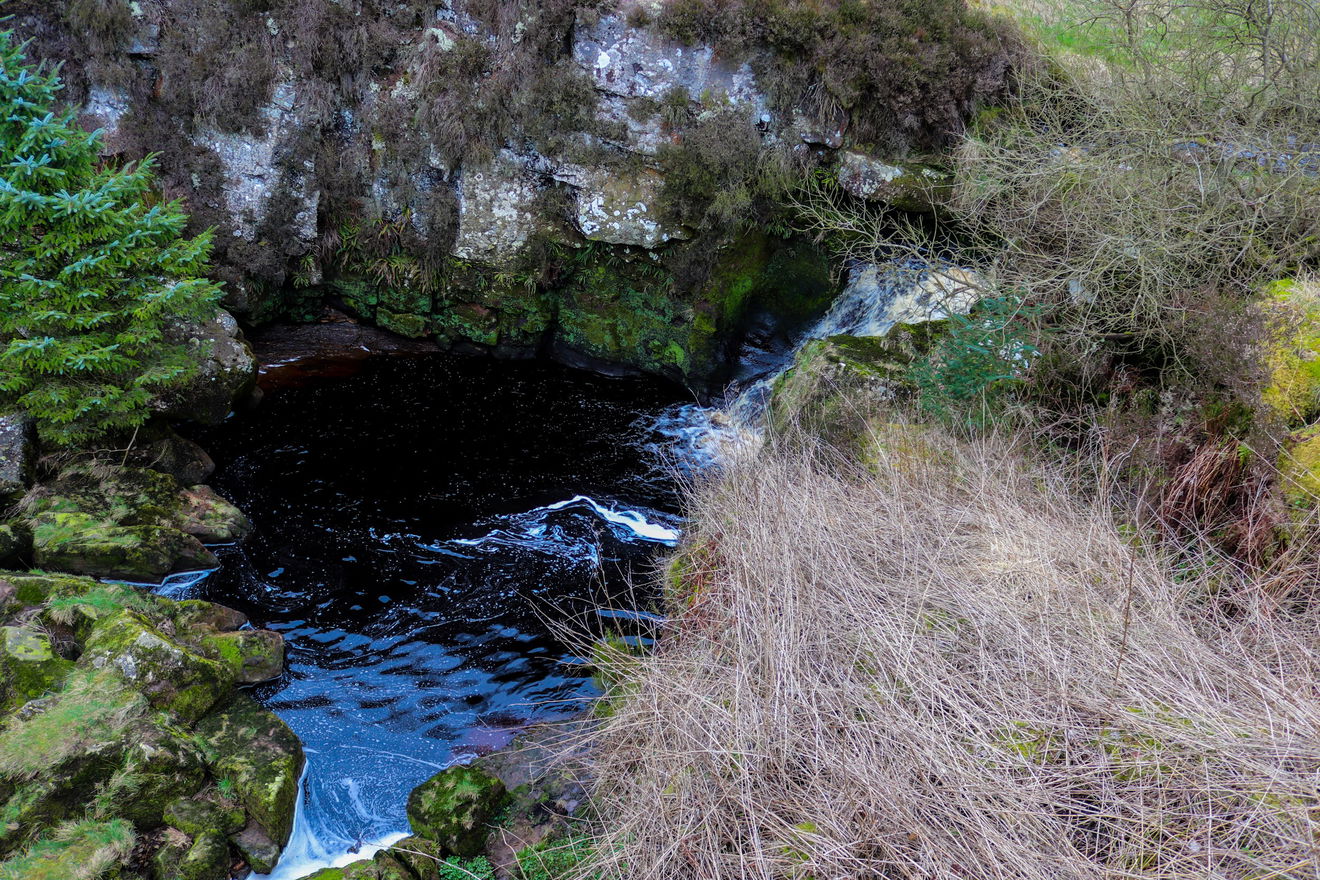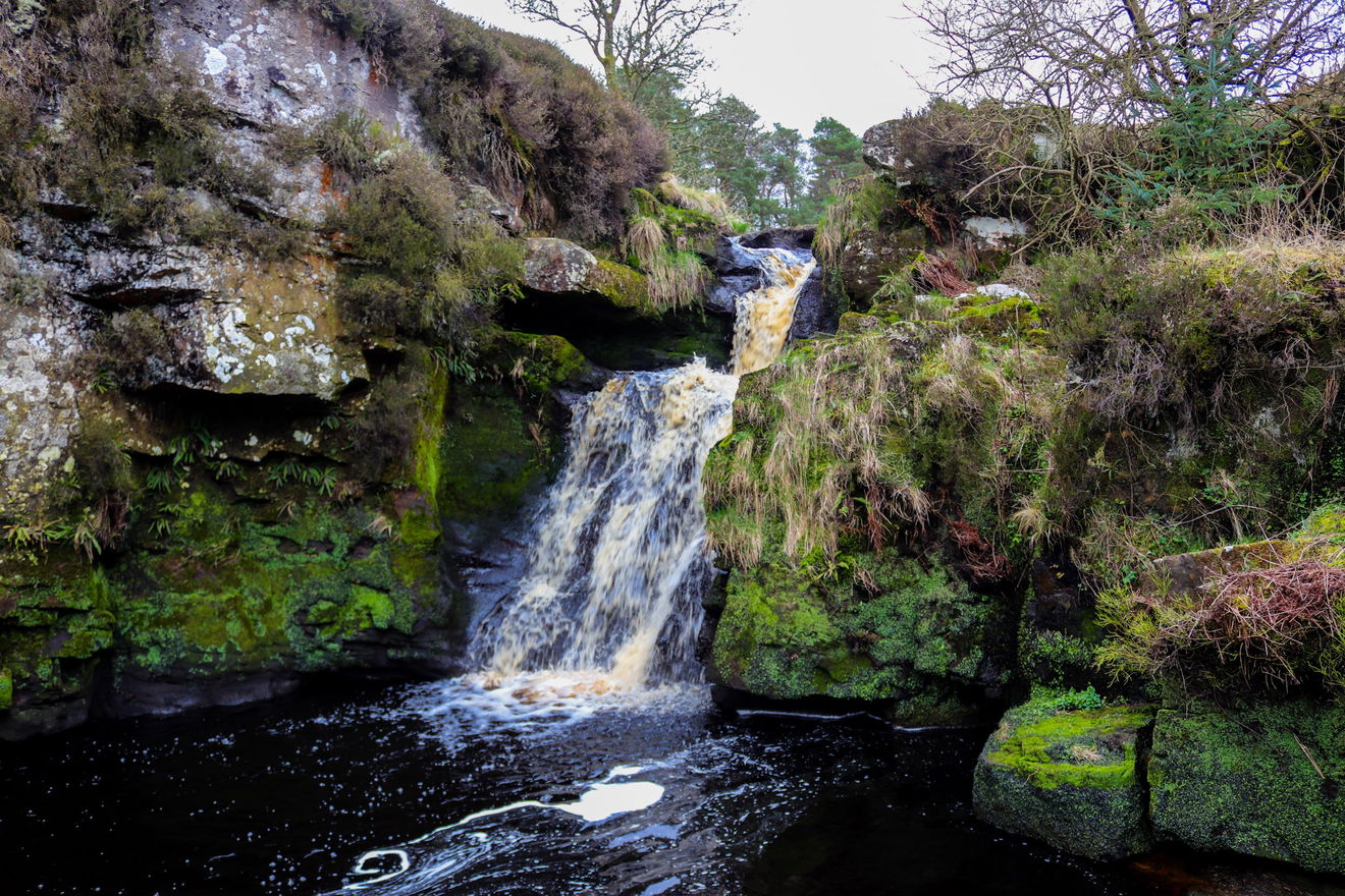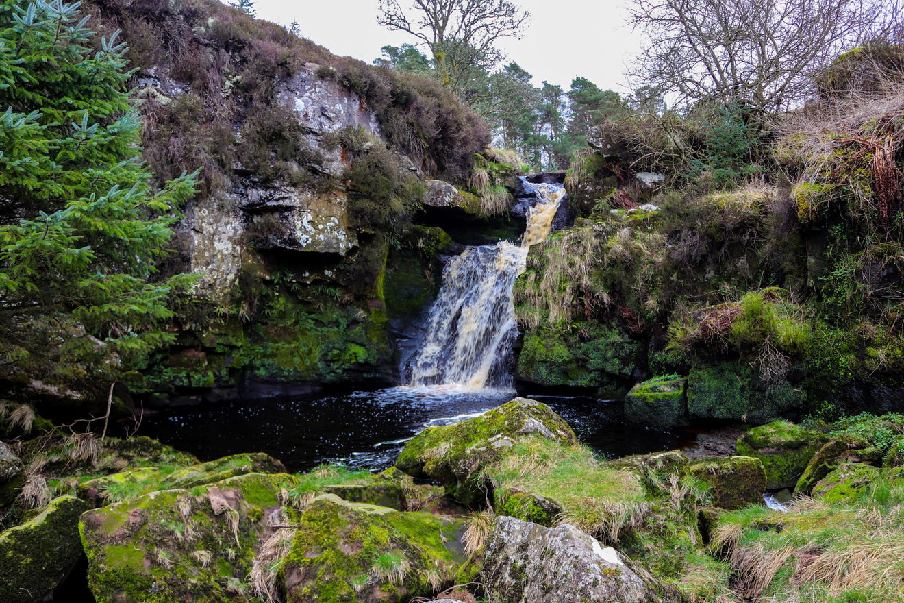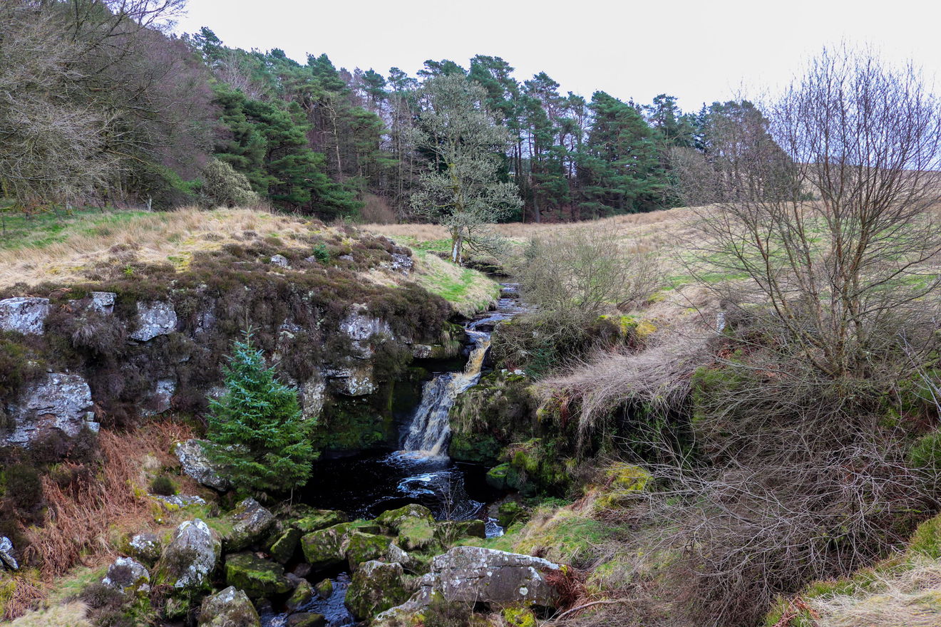 Stonehaugh Waterfall sits on the Middle Burn which feeds into the wider Wark Burn. It's a spectacular little waterfall and looks quite a picture when you get up close to it. It's surrounded by mossy rocks and trees and is very atmospheric, particularly after a rainfall when the peat-stained water runs a deep amber colour. It's a bit steep as you head down to the waterfall, so walking boots are recommended and take care on the climb down.