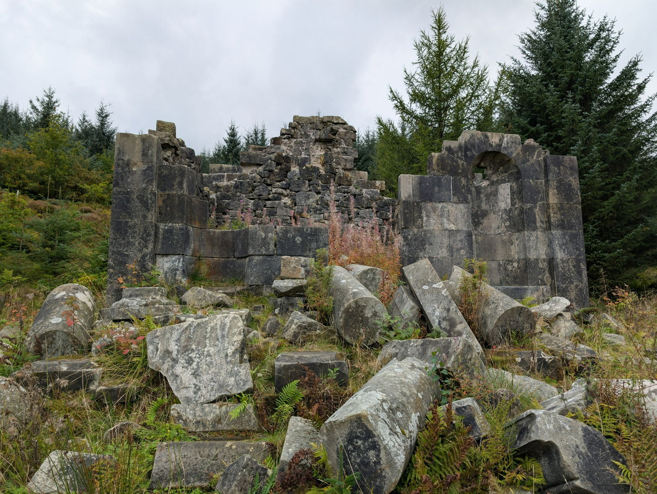 The walk starts from the Maspie Den car park, next to The Stables Cafe. It is well worth making the detour to see the Maspie Den Waterfall before continuing up to the Temple of Decisions.