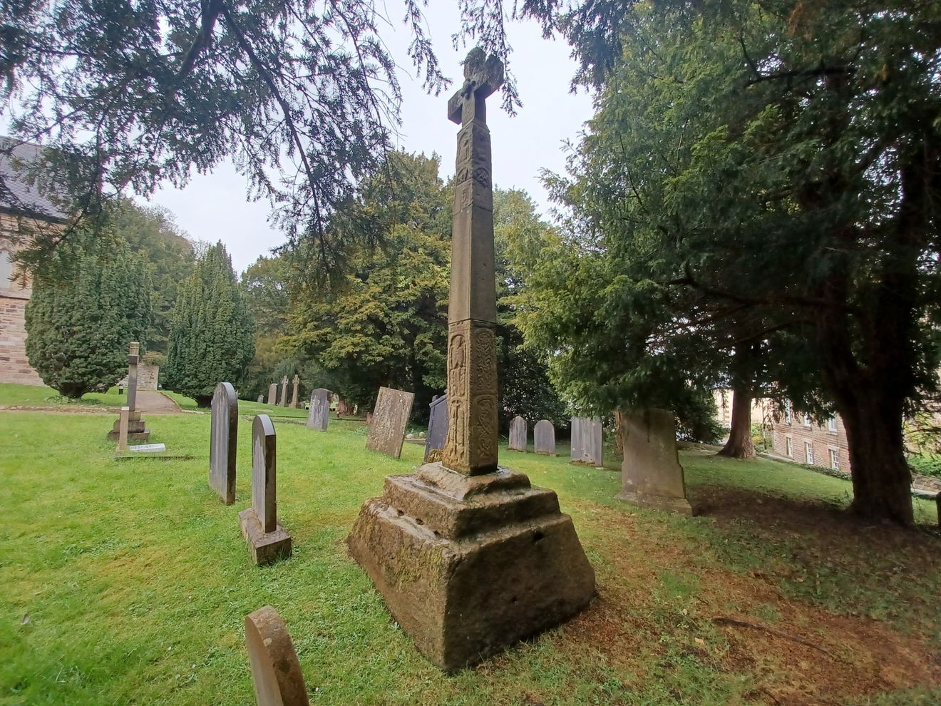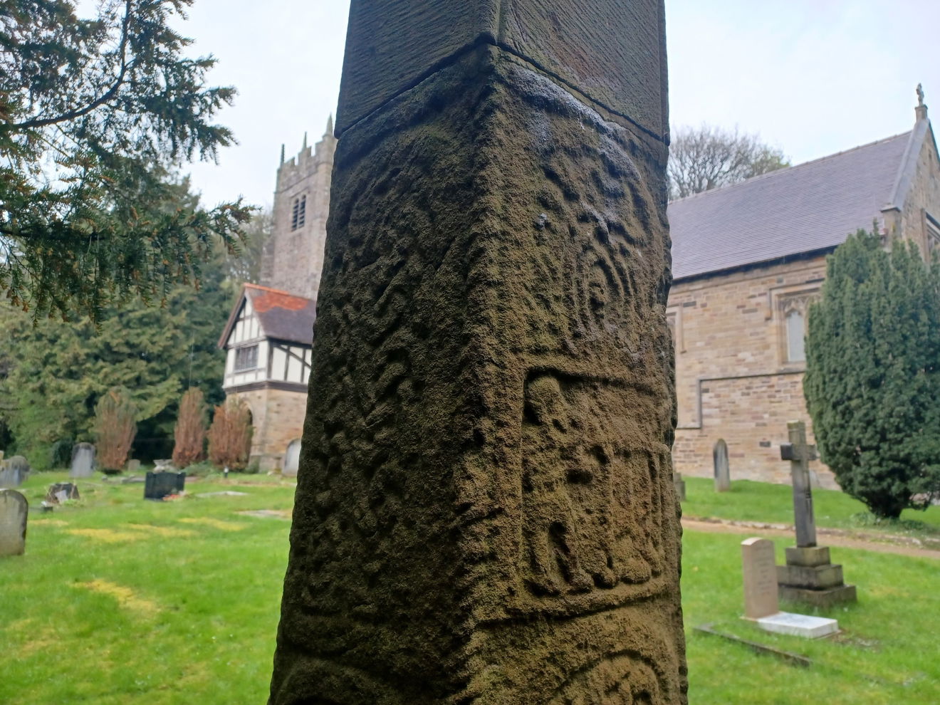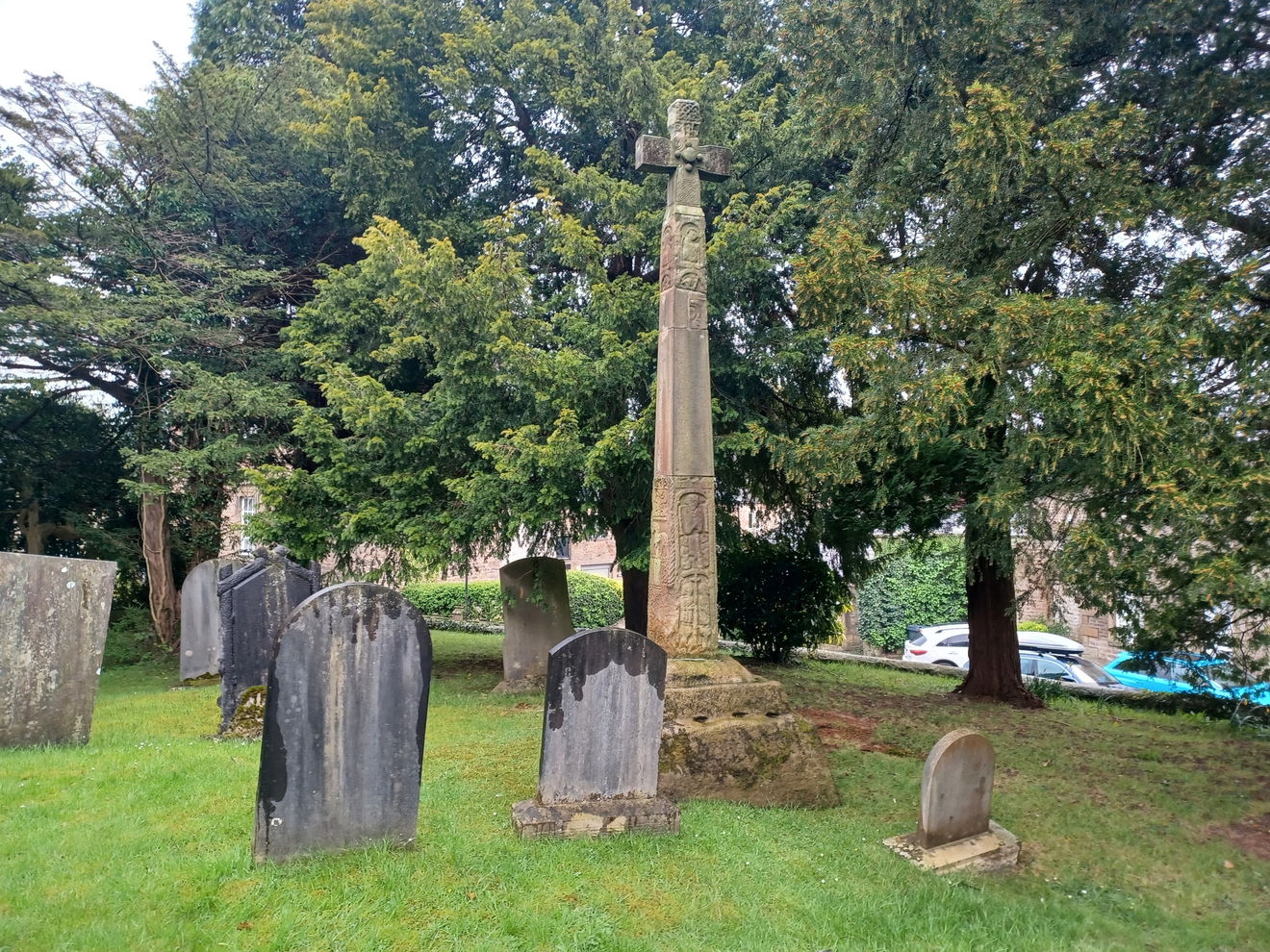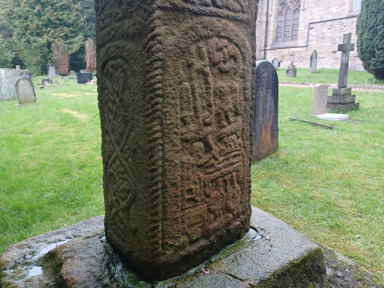 Ancient Viking Cross dated between 865 and 950 in the graveyard of St Wilfrid's Church.