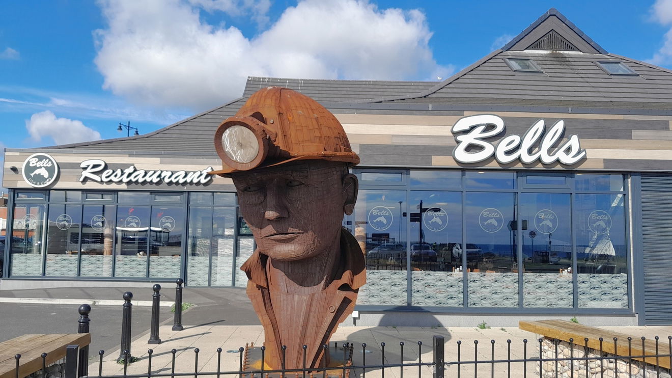 Ray Lonsdale was commissioned by the owner of Bells Restaurants, Graham Kennedy, to construct this super head which is called Then Gone. Graham had originally wanted a life-size miner modelled on his father, who worked down one of the local pits. Ray, however, reassured that this sculpture would get heads turning, and as a commercial venture, would benefit the restaurant too.