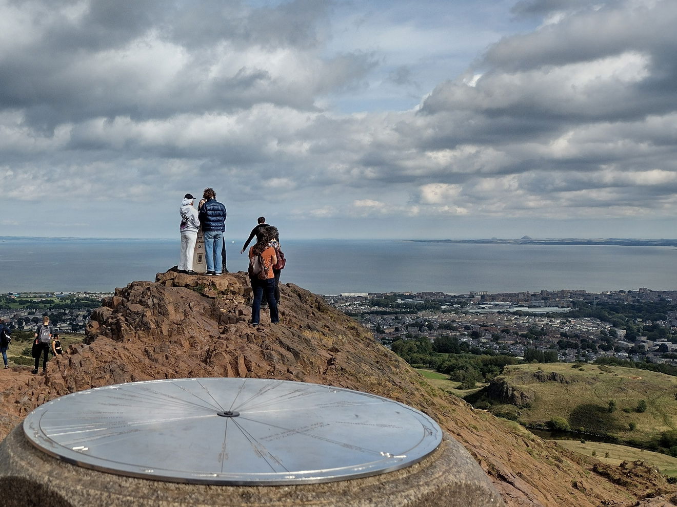 The Arthurs Seat trig point sits on a hill (251m) near Edinburgh.