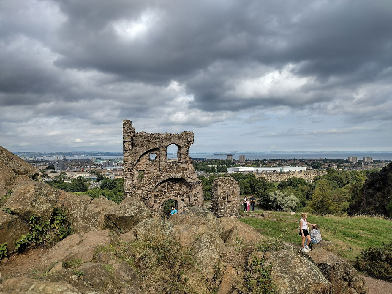 The remains of St Anthony's Chapel are visible across the loch. After enjoying the wildlife, retrace your steps and turn left uphill to the chapel remains.