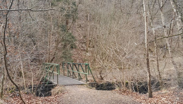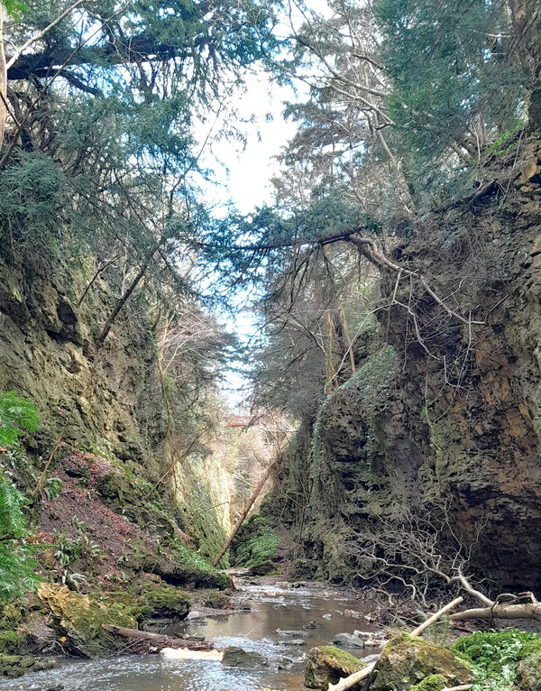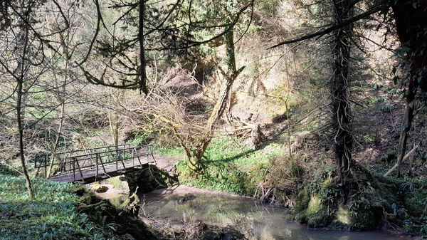 You'll see some moss-covered trees in Eden Burn. Follow the path to Devil's Bridge with the burn on your right.