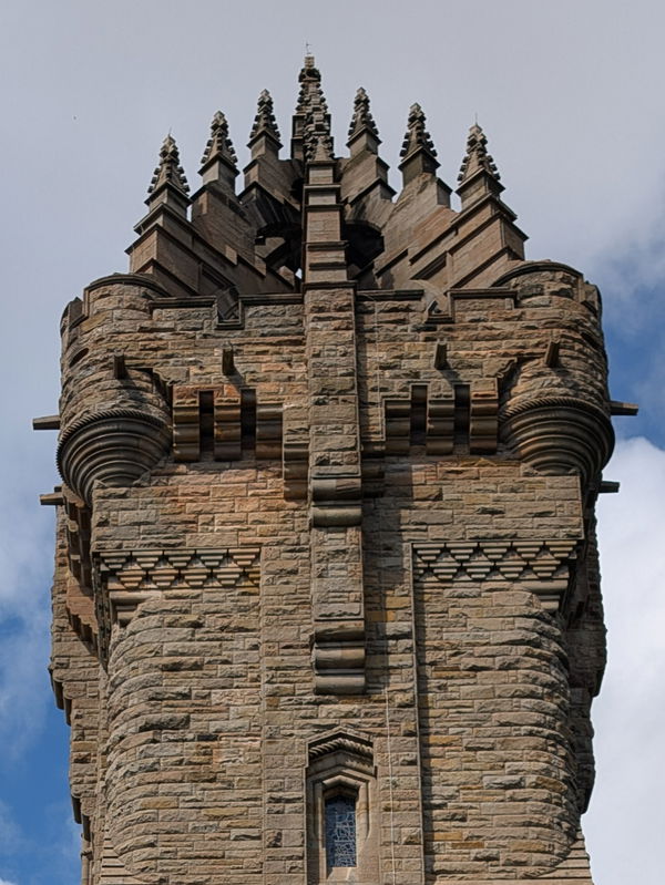Above the Coat of Arms, sitting on a niche on the corner of the tower is a 4 metre bronze statue of William Wallace. It was created by Scottish sculptor David Watson Stevenson and was unveiled on June 25 1887.