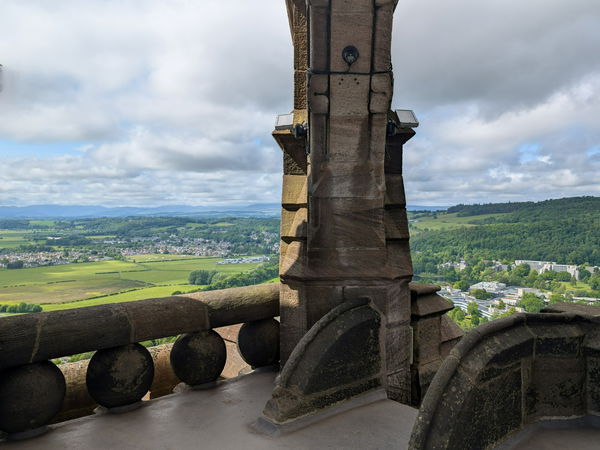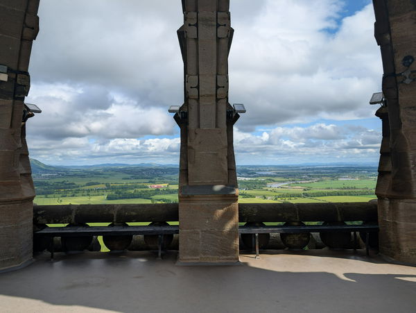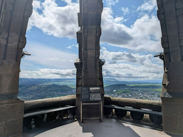The 67 metre tower was built on the shoulder of Abbey Craig, containing three floors of exhibitions and the crowning glory at the top. The bidirectional spiral staircase has a total of 246 steps, so each floor is a welcome relief.