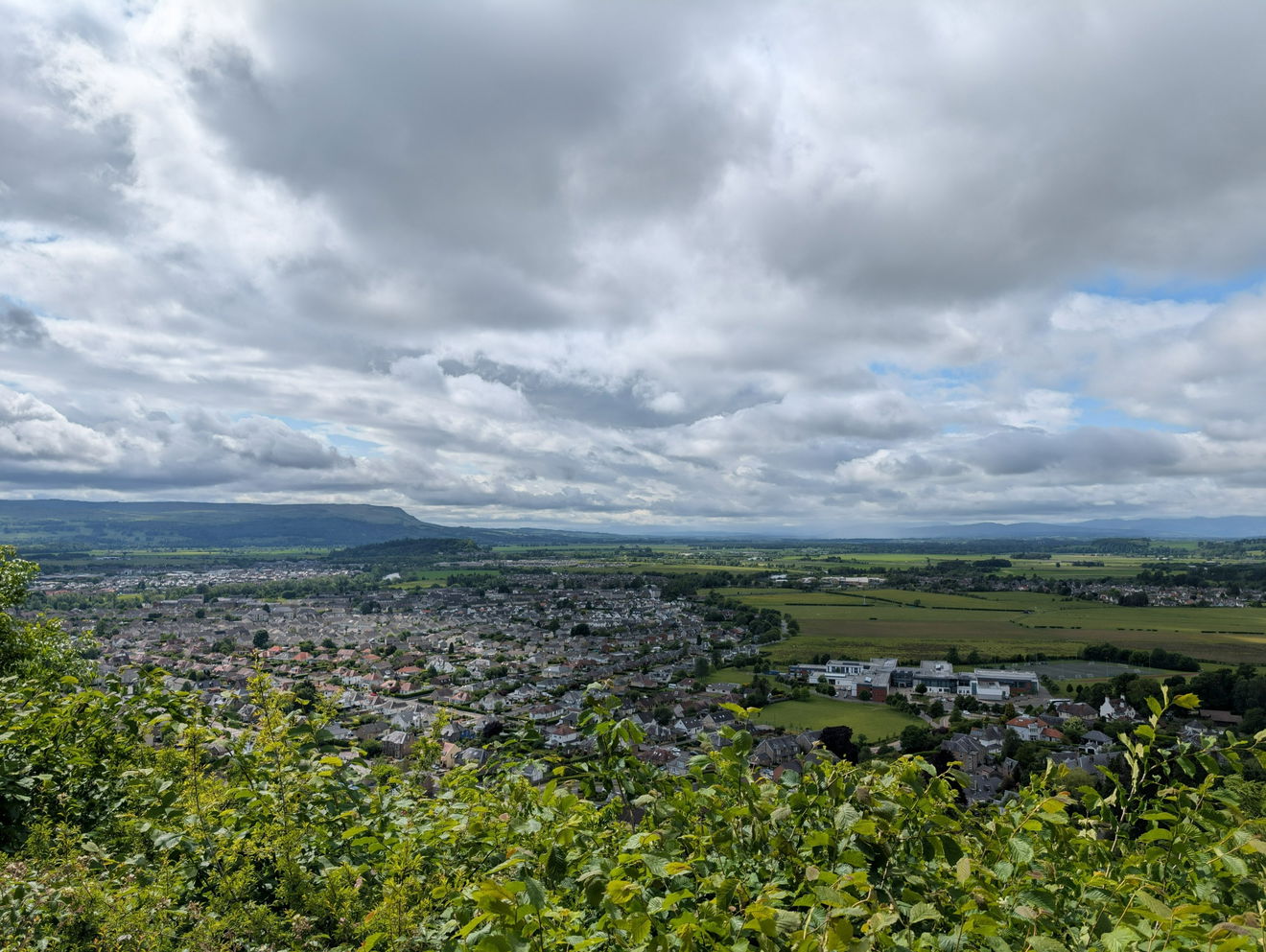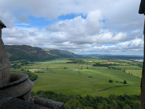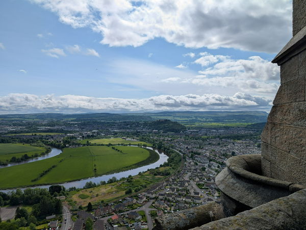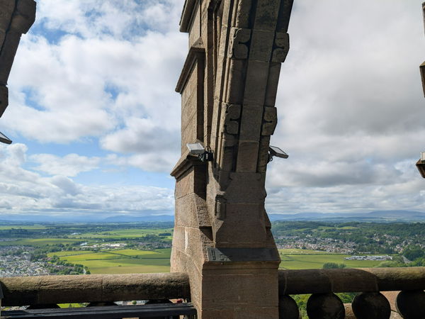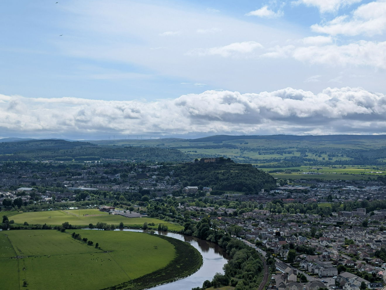 To the south west, you can see the Stirling Castle, the River Forth and the location of the Battle of Stirling Bridge.