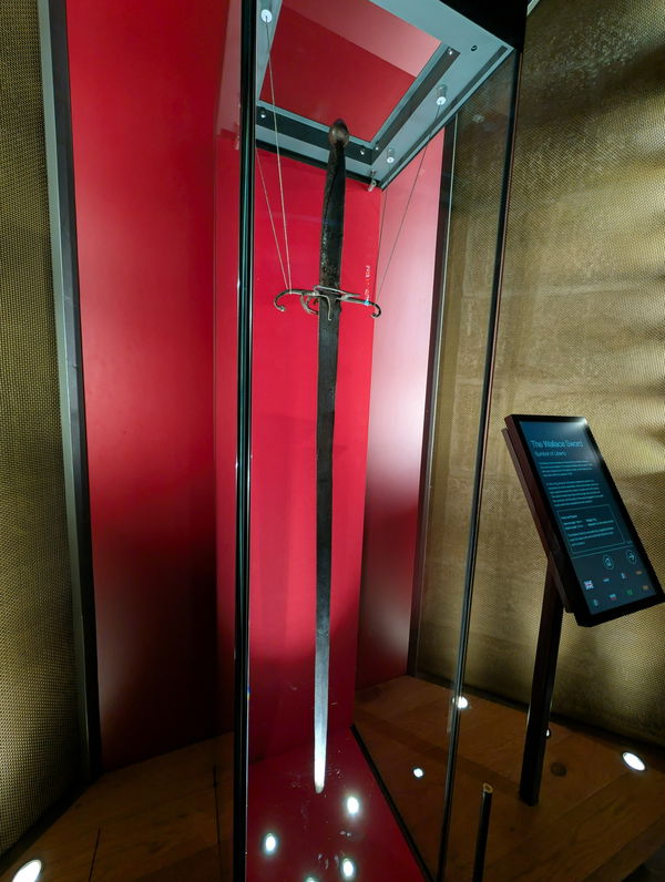 The Wallace Sword is an unmissable feature on this floor of the monument. It measures 1.68m and weighs around 3kg. This two-handed sword was first recorded in Dumbarton Castle, where he was held after his capture in 1305.