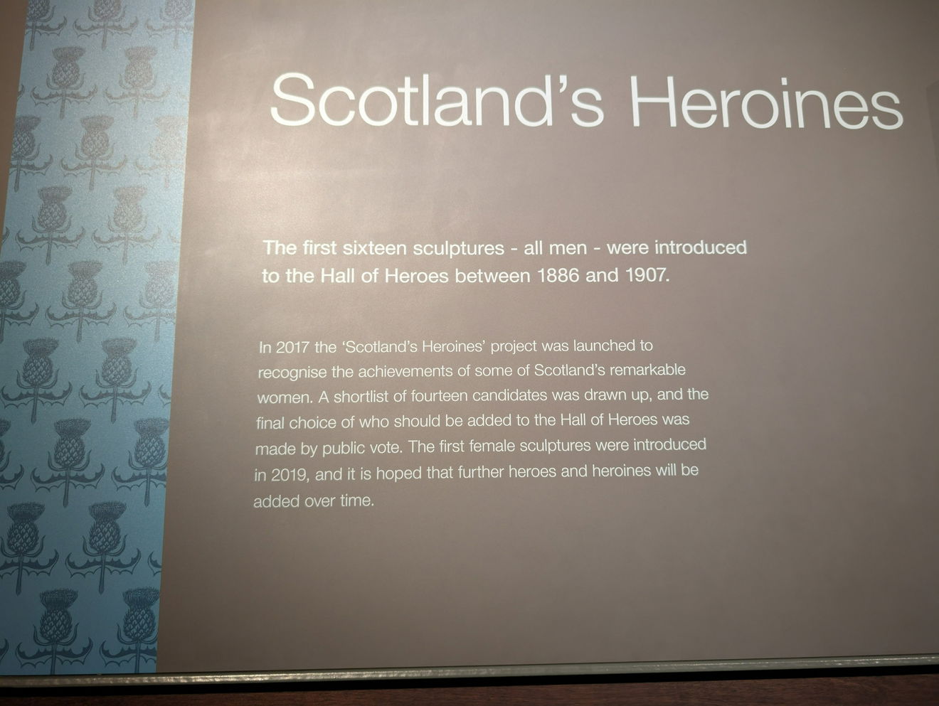 In 2017, the campaign 'Scotland's Heroines' was launched to recognise the achievements of Scottish women in the Hall of Heroes. Thousands of votes were cast by the public which resulted in Mary Slessor and Maggie Keswick Jencks, being selected to join the gallery. The ladies were added in April 2019.