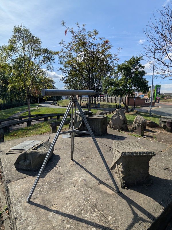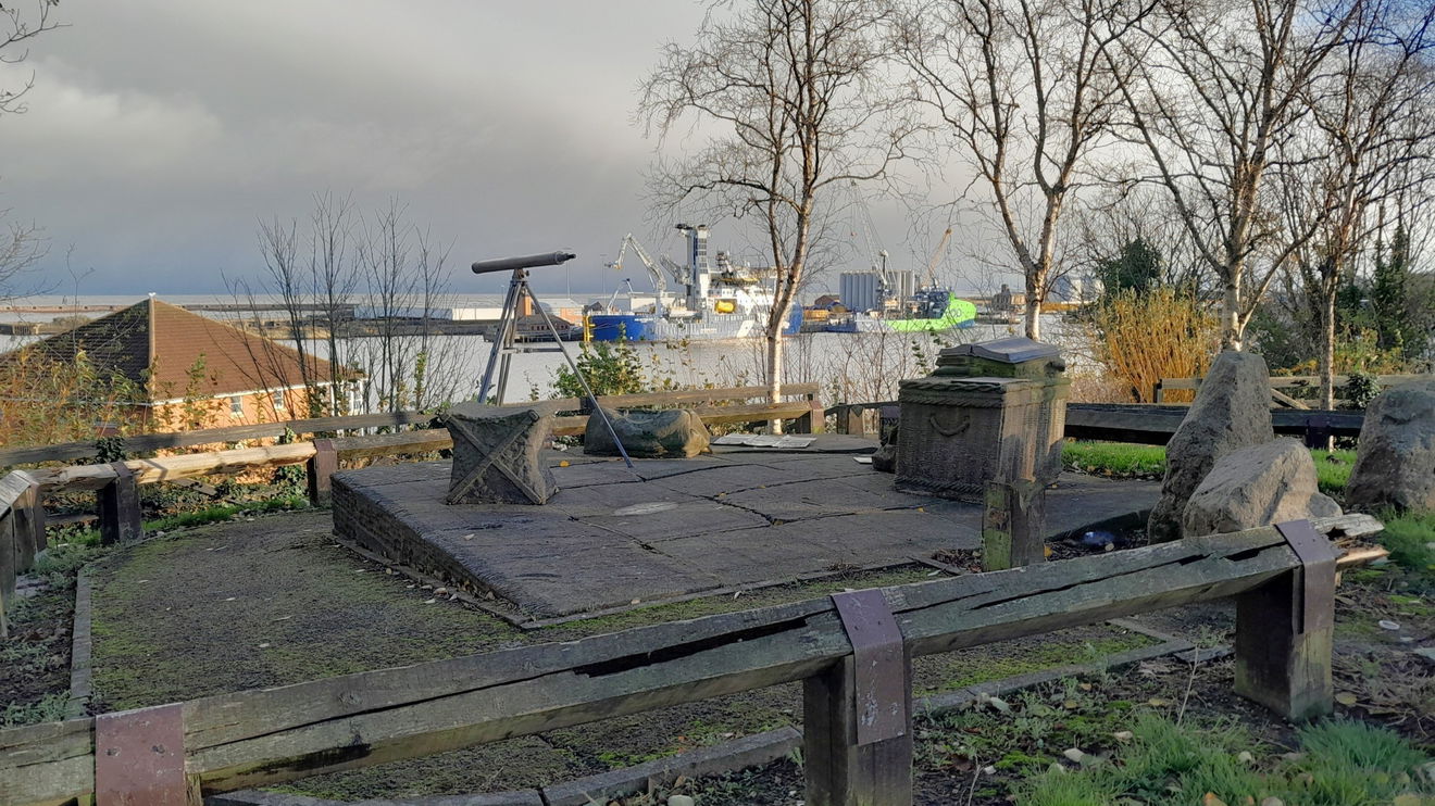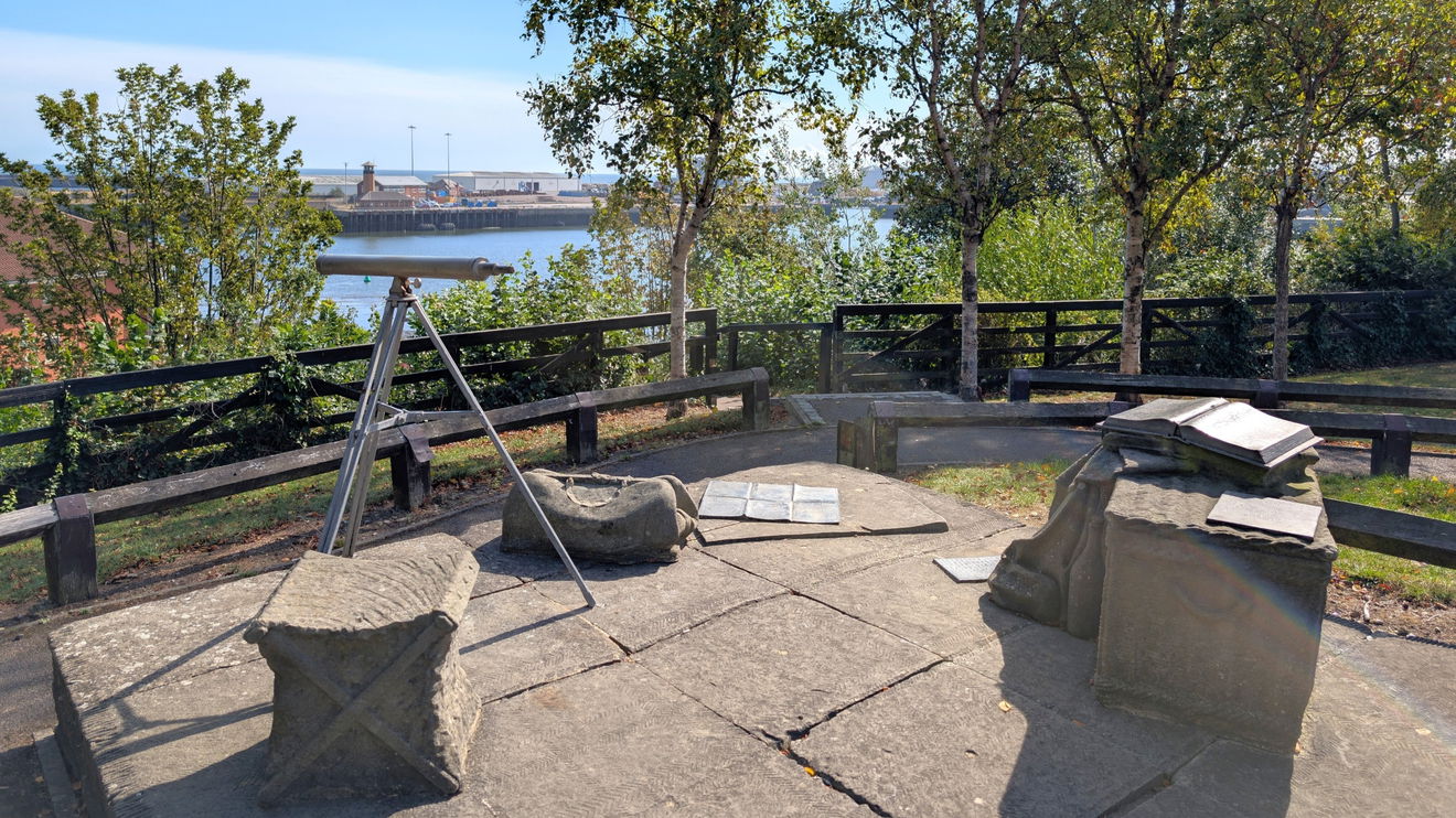 An old room set out with a seaman’s glass, and other features made from metal and stone. Situated on Lookout Hill overlooking the mouth of the River Wear.