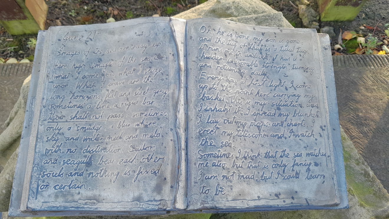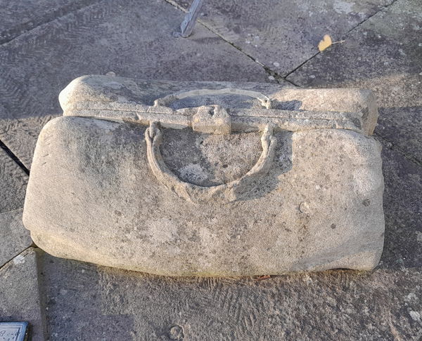The stone work is reclaimed, buff-coloured sandstone from the local old North Jetty. I wonder what's in the bag.