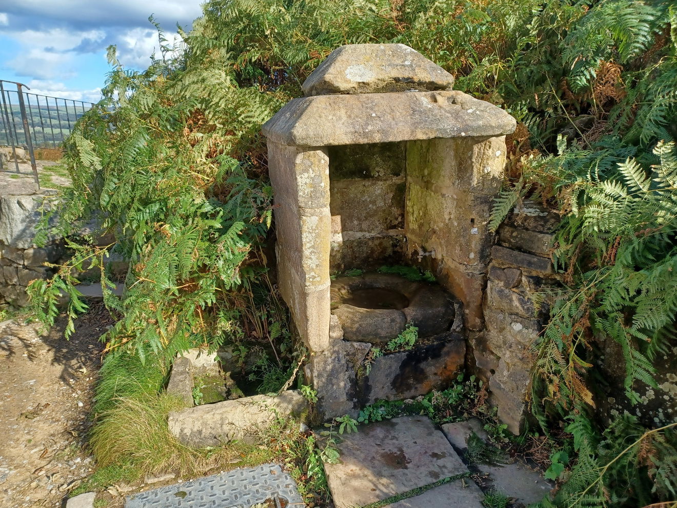 The water source is a spring that issues from the surrounding Millstone Grit and is piped into the remaining plunge pool, which dates from the Georgian / Victorian period. It remains at around 10 degrees and sometimes drops to below 7 degrees so it can legitimately be described as “refreshing”!