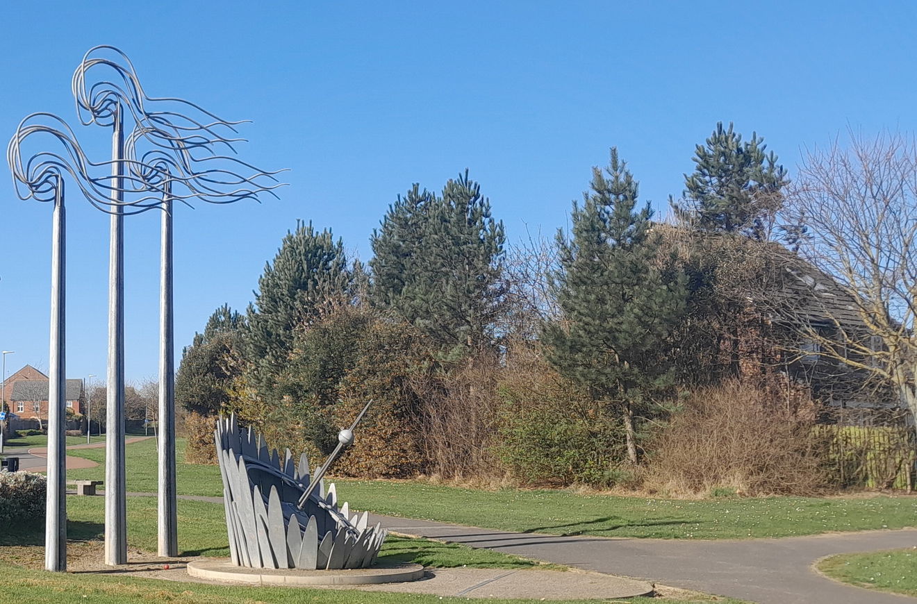 Oh, I do like to be beside the seaside, but this public art isn't in a go-to spot. It is in the East Shore Village housing estate. It was the former Vane Tempest Colliery, which opened in 1849 and employed more than 3,000 at its peak in 1914. Seaham Harbour was convenient for shipping coal, but the colliery closed in 1990. You may recognise Jewels of the Sea in the background.
